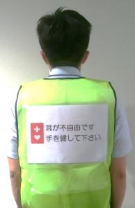 災害が発生した際に、視覚・聴覚障がい者が避難所等で着用し、
