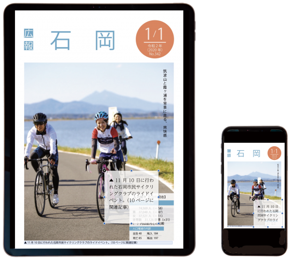 広報いしおか1月1日号表紙:R1.11.10開催のライドイベントの模様