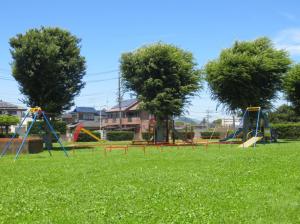 コンビネーション遊具2基、ブランコ、シーソー、滑り台、ロープウェイ遊具