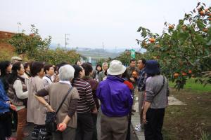 「やさと産のこの柿は、毎年11月になると皇室に献上するのです。どうぞ、味わってお召し上がりください」女子職員の通訳が加わると、外国のお客様の表情が変わりました。